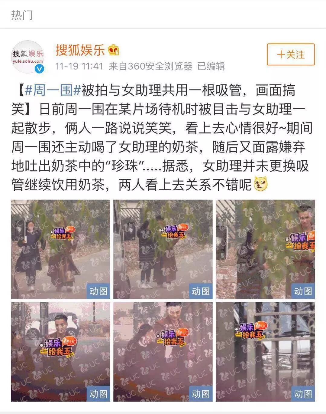 前段时间周一围,被记者偷拍到与女助理喝同一杯奶茶,事情发酵后,周一围的妻子朱丹愤怒的发了一条微博,质问为什么有些人要把周先生往“坏男人”的人设上推,随之又很快就删除了这条微博。